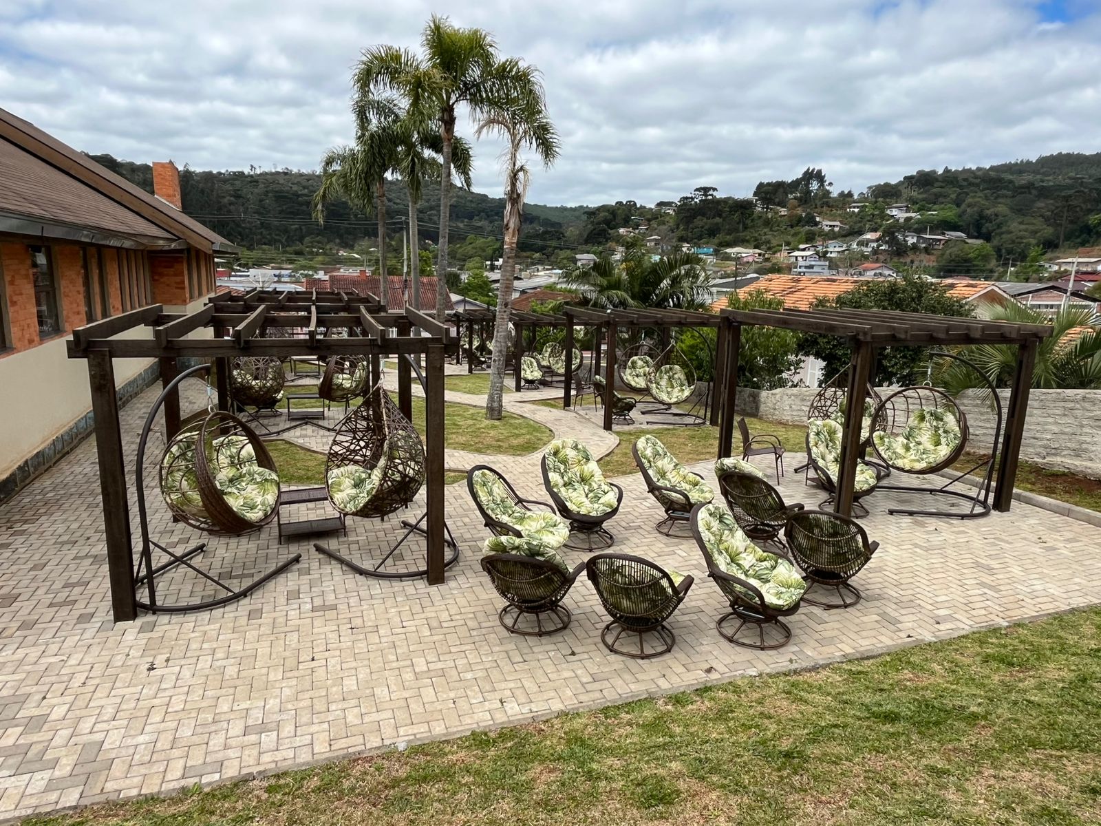 Confraternização regional: No centro da estrutura há uma lareira — símbolo das tradições culturais do Sul brasileiro, de reunir pessoas em torno do fogo (como no fogão a lenha) para chimarrão e conversa.