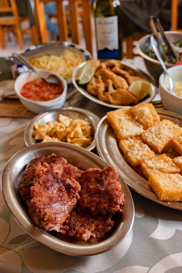 O jantar é um capítulo à parte: pratos típicos preparados com cuidado, finalizados com café e o tradicional gróstule — bolachas feitas a partir da receita original da nona, preservada até hoje. Para encerrar, o especial chá de brasa aquece corpo e alma, deixando no ar o sabor da tradição.